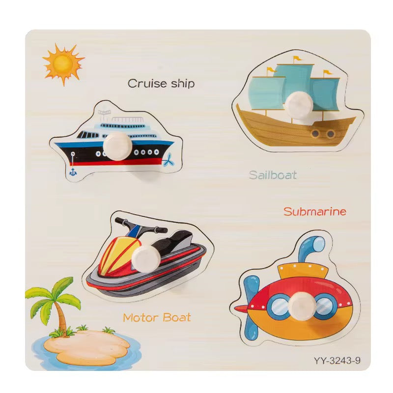 Crafted from smooth, child-safe wood, this educational peg puzzle introduces little learners to the wonders of the ocean. Each piece features a colorful cartoon sea creature—like jellyfish, lobster, clownfish, seahorse, and even a mermaid—paired with labeled cutouts to support word recognition, fine motor skills, and early cognitive development. The 15 cm board is compact and lightweight, ideal for toddlers and preschoolers.