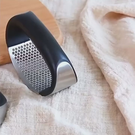 Elevate your kitchen game with this Stainless Steel Garlic Press—a sleek, manual mincer designed for effortless garlic crushing. Its curved ergonomic design fits comfortably in your hand, making it easy to roll and press garlic, ginger, or small fruits and vegetables with minimal effort. Crafted from premium-grade stainless steel, this tool is rust-resistant, durable, and built to last through countless meals.