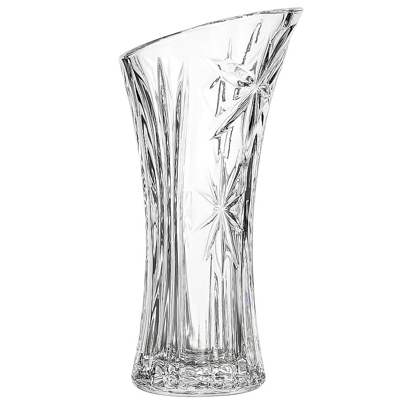 Description: This vase rises with grace, its surface etched in geometric brilliance. The flared rim adds a regal touch, while the body reflects light like cut crystal.